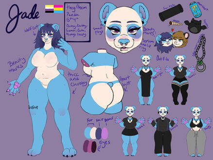 Ref sheets start at $60-$100 depending on the complexity / detail of your character . Front and back view included with a headshot, paw view , accessories, and chibi outfit of your choice !